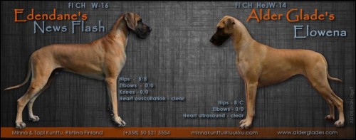 Isäksi pentueelle valikoitui mahtavan luonteen omaava ja näyttelyissä kovin menestynyt keltainen tasapainoinen ja terve uros Tuura, Edendane`s News Flash. Tästä mahdollisuudesta kiitokset kasvattajalleen Teija Salmi-Aallolle ja toimivasta yhteistyöstä omistajilleen Marika ja Samu Siltavirralle.